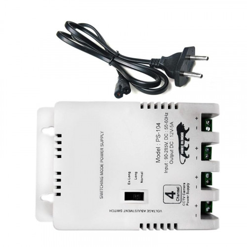 4-Channel 12V 5A CCTV SMPS Power Supply (Model: 104) with voltage adjutment